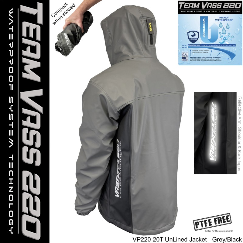 Vass are pleased to introduce the new Team Vass 220 series Waterproof Unlined Jacket. It’s lightweight, flexible and extremely quick drying. Designed to be very compact when stowed away and ready for when the weather turns wet and windy.