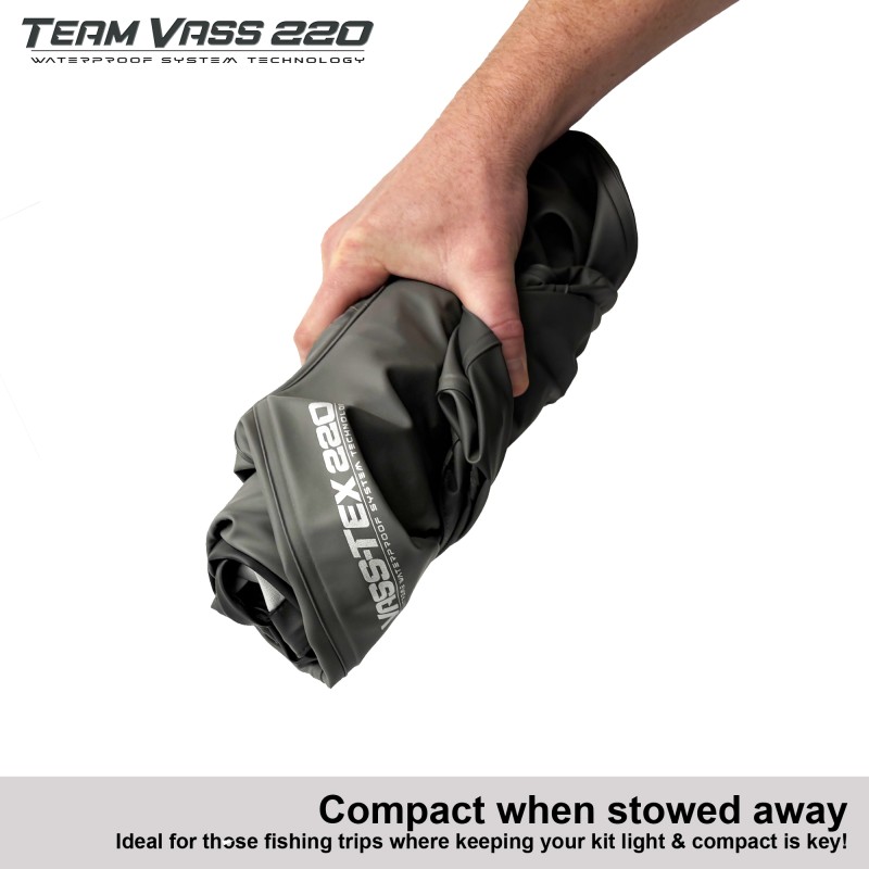 - Vass-Tex 220 waterproof material does not need reproofing, like many garments on the market, as it’s a fixed waterproof coating! Therefore, NO PTFE chemical leakage into the environments/water. Better for the environment!